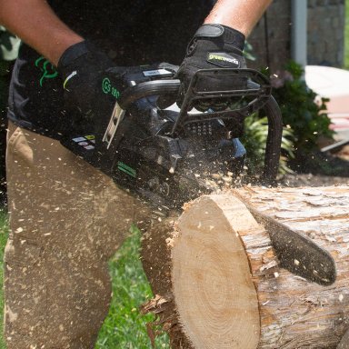 De Greenworks 82 volt accu kettingzaag GC82CS is de krachtigste professionele accu kettingzaag in het professionele segment kettingzagen. De DIGIPRO koolborstel vrije motor zorgt voor 30% extra vermogen en 70% minder trillingen